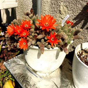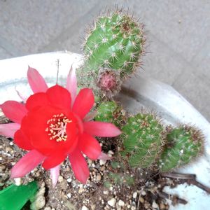 5年前、職場のお婆ちゃんから頂いたサボテン🌵 はじめは2cm程だった 今では縦横5cmほどまで成長し 一月以上前から蕾が3個! でも 一個は台風で物干し竿と接触💦 一個は少し小さくなってきた。もう一個に期待を寄せて🌵 頑張れ♡サボテン君