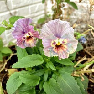 今朝庭に出てすぐに目に入った♡ お二人の共演が 朝日に照らされて可愛すぎた(๑˃̵ᴗ˂̵)♡ スカビオサ "白ときどき桃" とお名前忘れてしまった ビオラさん(-。-;🙏 (ポット苗の写真残しとけばよかった〜 これからは忘れずに📷) 可愛い顔の共演に出会えて よい一日になりそうだわぁ〜^^ "have a good day♡"