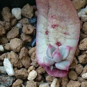 去年花芽についていた葉を葉挿し出来るのかなと置いたまま忘れてたら…出来てました💕