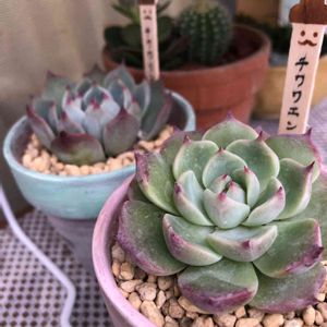 こんばんは( ᵕᴗᵕ )*・☪︎·̩͙ 今日は冷え込み+雨+編み編みモード突入で、多肉事はお休みでした😴 バスのお迎えの時、原澤園芸さんで購入したイオナンタをママタニ友さん達に渡したら、みんなすっごく喜んでくれました( ᷇๑ॢ˃̶͈̀ ꇴ ˂̶͈́๑ॢ)❣️ みんなでがんばって花を咲かせよう❗️と言い合いました😊 上手に咲かせられるかな🎶 夕方picは 「お久しぶりです」 エリカ様です。 チワワエンシスの札が付いていましたが、あき審議の結果エリカは「桃太郎」と判定されました(笑) まあ、抜群に可愛い事には変わりありませんが(//ձωձ//) ᐝ💕 さすがチワワちゃんの血を受け継ぐモモちゃん🍑 可愛いなぁ〜😍❤️ さあ、気合い入れて編み編みしなくてはね〜୧꒰*´꒳`*꒱૭✧︎