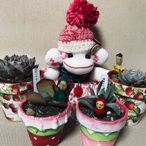 今日の天気は晴れ☀️ でも寒さが本格的になる予想らしい。 今日はいちごの日🍓 haruちゃんにもらった🍓のソクモンちゃんとデコパリメ鉢と塗り塗りリメ鉢のいちごづくし🍓🍓🍓で参加します😋 45ちゃんにもらったピーナツ🍓🍌🌵を多肉たちの側にin アロマさんにもらったツチトジとデザートローズ デザートローズちゃんはちょっとまだお目覚めじゃぁないのか元気がないの😅 今日からお家に入れてあげよ〜😆 そろそろ冬支度をしなさい❣️っといあ合図かな😅 今日も元気に楽しい一日でありますように💓😋