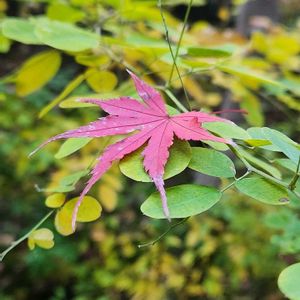 おはようございます☺ 昨日 少し時間あったので 近くの公園に~🚙 紅葉🍁したモミジ ハギの上にひらり ~ 2枚目~ この路は せせらぎの路と 云われてます。 今朝は、5℃と 冷えました😊 行ってきます😊