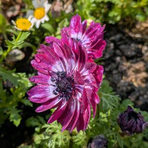 ミニトマトときゅうりの苗と、半額のアネモネを植えました 勿忘草ピンクと水色が混ざっていてかわいいです 花壇いっぱいにノースポールが咲いています ネモフィラも花数が増えてきました モッコウバラの花芽がたくさん、クレマチスもぐんぐん伸びていて咲くのが楽しみです