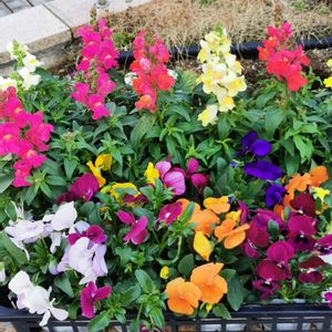 駅のプランターの花が綺麗でした。💗 雪が心配です。🥶