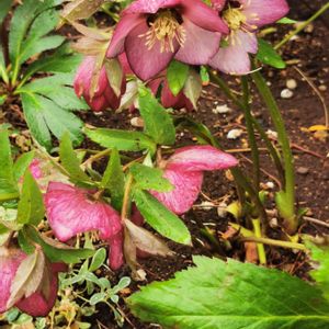 おはようございます。💗 会社近くの花壇に クリスマスローズが咲き出しました。🌸🌸🌸