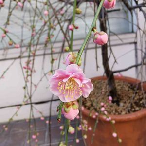 昼休みのお散歩でこの間から、 観察していた紅梅がだいぶ咲いてきました。 並んで白も何鉢かあります。 何かいいですねぇ。