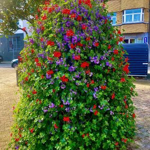 黄色のランタナと 斑入りのコリウスの 取り合わせがgood 久しぶりの街歩きで 見つけた寄せ植え