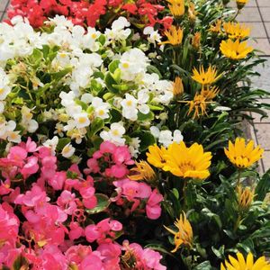 細い路地にたくさんの種類の お花が咲いています。💞 その中でヒメヒオウギスイセンが華やかでした。💘