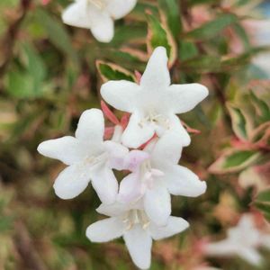 今日のお花💞 アベリア🌿 斑入りの葉で素敵でした。💚 慌てて、撮ったので、イマイチ。🌸 輝く白さにズキュン!💘