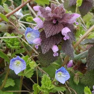 春はてんこ盛り🌸 あれよあれよとあちこちから顔をだす。 こんなん名前覚えられないよー💦 あってますか? たつなみそう、ケマン、アジュガ、オドリコソウ、怪しい、、