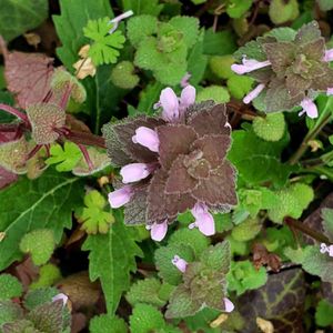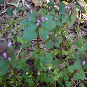 梅雨☂️本番⁈ 降り続けます 5月に🚘で遠出した 住友の森フォレスターハウスで出会ったお花を カキドオシ(垣通し) 葉の付け根に咲く花は 優しい紫色💜 唇のように上下に 別れている (別名)カントリソウ ヒメオドリコソウ (姫踊子草) 赤紫色の葉と 小さな淡紅色の花♪♪ シソ科オドリコソウ属