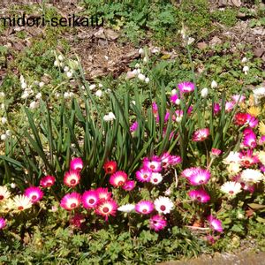 おはようございます。 いい天気が続きます。 散歩中に見かけたリビングストンデージー、仲良く咲いてます。