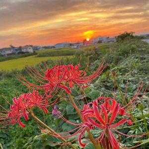 散歩中、石垣の間に夕日を浴びて咲く🌼