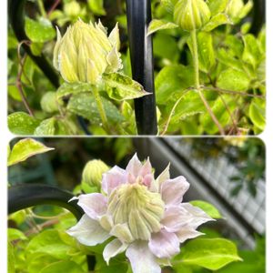 雨降りのあとの庭パトロール クレマチス、ベルオブウォーキングが 咲いてました♪昨年の剪定、切り過ぎたー と思ってましたが、ちゃんと咲いて くれてひと安心です😮💨