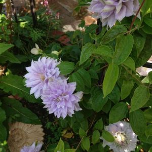 おはようございます(˶ᵔ ᵔ˶) クレマチス♡ベルオブウォーキング💜🤍💚 昨年、玄関先から鉢ごと行方不明になったベル様😭 あまりに落ち込む私を見ていた娘ちゃんがプレゼントしてくれた子が素敵に開花しました💕ヤッ*。٩(ˊᗜˋ*)و*。ッター! 🤫でもね、実は娘ちゃんからプレゼントされる前に怒りにまかせて🤣ポチッたベル様がいるの〜😆 なので現在我が家にはベル様2株😆 お庭と玄関先で(今度はどこかへ行っちゃわないようにラティスにしっかり絡ませています)咲いています〜(。˃ ᵕ ˂ ) 華やかなお顔は見ていると気持ちも明るくなりますね🥰💓 娘ちゃんの優しさに感謝です (*ᴗˬᴗ)♡ 今日も皆様にとって良い一日でありますように😌