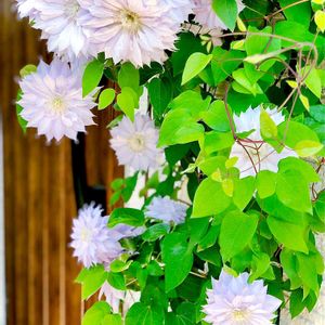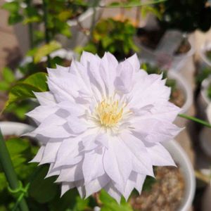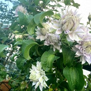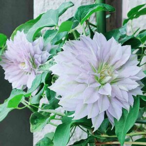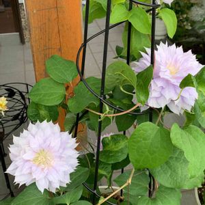 クレマチス ベルオブウォッキング 先日急にやる事になった😱外壁塗装が終わりお隣さんに預かってもらっていた植物達を少しづつ定位置に戻してます。 お部屋に入れたのは枯れてしまったり弱ってしまったり悲しい事もありました (٭°̧̧̧꒳°̧̧̧٭)手放したのもかなりありました。 今年は160cmのオベリスクにハニーサックルと一緒に誘引してみました✨ なんかお花真っ白ですが( ̄▽ ̄;) 色は変わってしまったけど八重咲きの素敵なお花です(*´˘`*)♡ まだペチュニアとか植えて無かったので昨日ファーマーズさんに頼んでおいたお花が入荷されたから買いに行きました✨ まだお花達定位置に戻しきってなくて💦💦💦落ち着いたらまた定期的に投稿したいと思います。