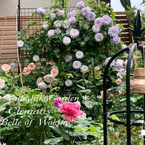 クレマチス ベルオブウォーキング🎵 オルレアとはコラボしてくれたけれど、薔薇🌹とはまだねぇ~😂 でもまだまだ咲いてくれるかな🎵