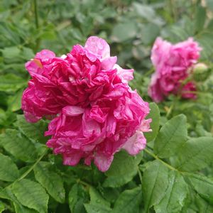 小雨です☔ 花がら切りしてたけれど、もう無理~😂 十六夜薔薇(ロサ ロクスブルギー) 少し欠けて🎵らしく咲いてます~💓
