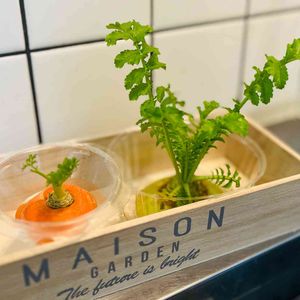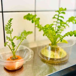 キッチンで、ちょこっと野菜のグリーンを楽しんでます。 大根も、ニンジンも、葉っぱがぐんぐん伸びて毎日キッチンに立つたび癒されてます😊💓