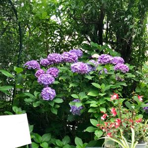 庭に咲くラベンダーと紫陽花 雨が降って緑がとても綺麗