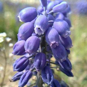 ブドウの房のような花で青紫色がきれいなムスカリ。 小さな花ですが、青紫がコントラストを醸し出します。