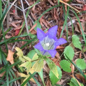 あなたはだあれ❓ (´⊙ω⊙`)⁉️ くまちゃんさんに教えていただきました😊 植えた覚えのない竜胆です。 これ1本しかなく、葉っぱも枯れ気味なので、来年に期待します╰(*´︶`*)╯♡❤️