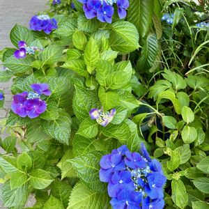 紫・青のアジサイの花言葉:「冷淡」「無情」「浮気」「知的」「神秘的」「辛抱強い愛情」 🌼アジサイの色が変わる理由🌼↓ ①青:土が酸性→土中のアルミニウムイオンが沢山溶出→花の色素のアントシアン(赤)が青くなる。 ②赤:土がアルカリ性→アルミニウムイオン少→アントシアンが元の赤い色のまま。 ③紫:①と②の中間。 ④白:元々色素が無い。 街中に青いアジサイが多いのは、日本が火山大国で、酸性土壌が多いから。 アジサイを赤くしたい場合は、春に苦土石灰を撒くか、卵の殻を粉状に砕いて撒くと良い。 青色を保ちたいなら、土の性質を酸性に保つようにし、 リン酸の少ない肥料を与えたり、4月から5月にかけて、500倍~1,000倍に薄めた硫酸アルミニウムを株元に施したりする。 施す間隔は、20日おきに2、3回を目安にする。 アジサイ科アジサイ(ハイドランジア)属🌿