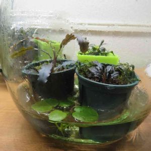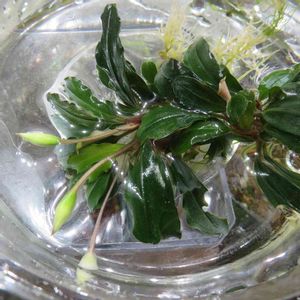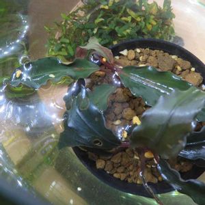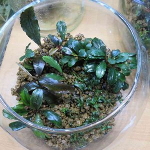 Bucephalandra sp. 鉢植えにしていたものを色々植え込んでみました。密閉で育てます。