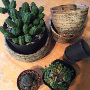 本日札幌花フェスタの戦利品 グロボーサ、ラウシー、蛾眉山 苫小牧が窯元の鉢 何植え替えしようかなぁ〜〜😊