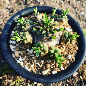 ついこの間までは葉っぱなんて1枚もなく石コロみたいだったのに。 動きだすといっきに芽吹きました〜! コロコロした株ににチョロっと芽吹いた姿がなんとも愛らしいです。笑