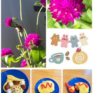 🏷今日のお花 センニチコウ、今朝のお庭から💗 今年、種から育ててみました。 ⬇️孫が粘土で作ったオムライスと? あっ❣クレープ。娘が写メ送ってくれました💗取り敢えず、美味しそうと、返信して。