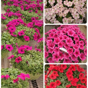 花園ではサフィニアの花がらを摘み出荷に向けて大忙しです。 右上のモモイロハートと言う名前の花は東京で人気だそうです。
