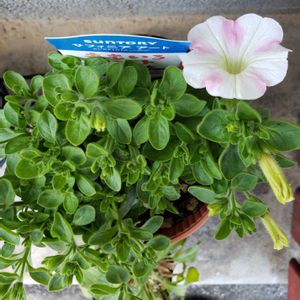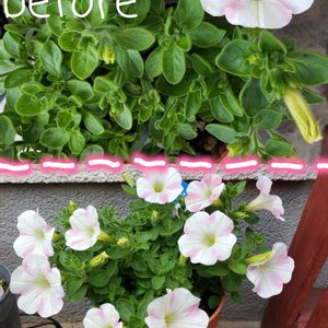 サフィニア咲き初めてきました🎶⤴️ 今年は、盛り盛りに挑戦するので、さっそく✂️チョンパ✂️ すっかり🌱葉っぱだけになって、しばらくお花見れないので✂️チョンパ✂️したお花もパチリ🤳