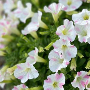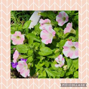 おはようございます☁️→🌥️ 7時の気温16℃ 15℃~26℃ 今日は太陽はお休み。雲が優勢の空の予報 団地内の散歩で、優しい色のサフィニアが咲いていました✨️💗 ❇️サフィニア•ももいろハート SUNTORYのサフィニアアートシリーズの1つ。 花弁の模様にピンクのハート形が見られて可愛い🥰