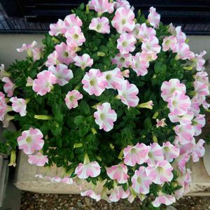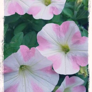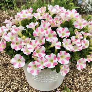 サフィニアももいろハート💕 白いお花の地真ん中に薄いピンクのハート模様‼︎ 凄く可愛い😍次々咲きます🌸