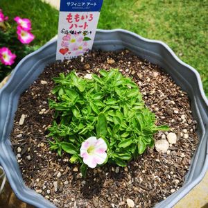 サフィニアももいろハート やっと咲きました。 5/4の植え付けの時にピンチしたから毎日ずっと緑だけ眺めてましたー。 頑張ってもっと咲いてくれたらいいな。