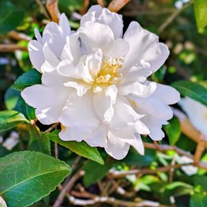 乙女椿のような八重咲きピンクの山茶花が咲き、 野菜畑のお隣では、満開になってお見事です❗️