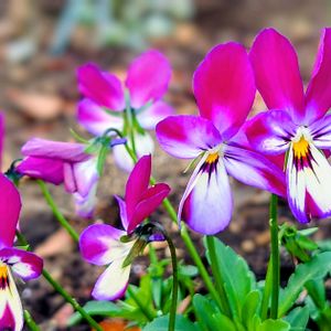 ビオラ バニーイヤー 他のパンジー類などを ロックガーデンに、色々寄せ植えで並べました