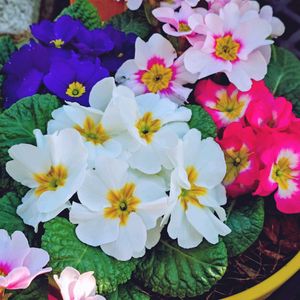 鉢植えのプリムラの花が綺麗に綺麗ています。