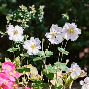 白いシュウメイギクの花が綺麗に咲いていました。