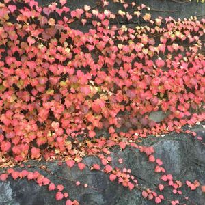 小さい秋み〜つけた 塀伝いに小さい葉っぱが赤くなってました