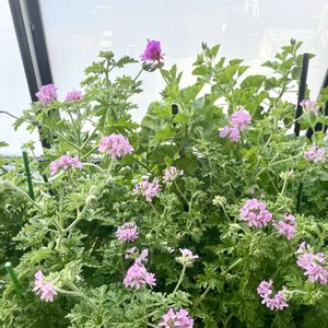 ベランダが華やかになってます ①②③ローズゼラニウム (ニオイテンジクアオイ)とも 言うハーブの一種 葉を料理に使うともお友達に 教えて頂きました ④⑤ペラルゴニウムの蕾 これもテンジクアオイ属 この他にランタナにも 蕾が付いてます