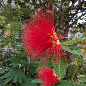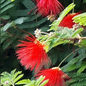 緋合歓 ヒネム🌿❤️ 真っ赤なパフのような花は雄しべだそうです。 綺麗ですね☺️ 別名 紅合歓 ベニゴウカン