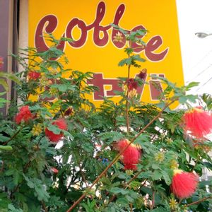 先日行った、谷中のカヤバ珈琲♫ ベニゴウカンの花がたくさん咲いていました🌼 写っていませんが、チェリーセージのホットリップも😊 レトロな雰囲気がとても素敵なカフェ☕ スイーツも美味しかったよ😉