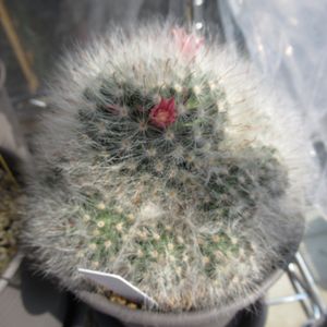 赤花高砂の花。 開き切ってはいませんが ふわふわの綿毛に囲まれて咲いてます。 でも うっかり触るとカギトゲに 引っかかって 大変なことになりますので 眺めるだけにしてます。
