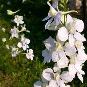 おはようございます☺️ 1・2チドリソウ🤍 今年も、零れ種から、チドリソウが咲き始めました🎶 始めは紫💜と、2色でしたが、白だけになりましたが、とてもきれいです💕 3・マルバストラム🧡🤍 5月~7月にかけて、アプリコット色が開花するアオイ科の多年草です😌 花友さん宅で、初めましてのお花です💕