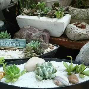 いつの間にかポロポロしていた葉が大きくなったので和風に寄せ植えしてみました🤗 何だか緑茶飲みたくなった🍵