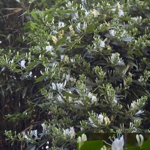 Elmarくんと朝散歩途中🤗 このつる性植物、花が咲いてるけど名前が分からない😥しろくて綺麗、、、