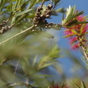 長屋門公園の帰り道 ブラシの木 花とタネ?
