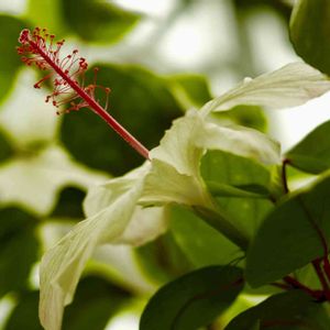 白いハイビスカスがありました ブーゲンビレアと比べて大きな花ですネ(╹◡╹)